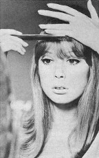 The first thing you do is to moisten your eye-liner brush (it should be a good sable one with a fine point) and cover it with eye-liner (either liquid or paste - I use paste). Only experience will help you decide whether black or dark brown eye-liner is best for you. Black is usually best on everyone, but there are exceptions. Now gently, but firmly, make an even black line from your indside top lid going outward. Be sure to keep your lids lowered and concentrate upon looking at what you're doing with the other eye. You may need to use your other hand to pull lid taught to make a straight line. If you have a great deal of difficulty make a base line with a medium soft (razor sharpened) black eyebrow pencil, then follow that line with the brush. Practice making the end of your eye-line curve up or run out straight and downish. Choose whichever looks best on you.