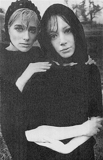 The black velvet touch, below: in front, a hand-knitted chenille sweater with sleeves wavy at the elbow, wavy round neck. 4 1/2 gns at Jaegar, Regent Street W1. For the matching headscarf, get do-it-yourself knitting instructions direct from Jaegar, send stamped addressed envelope. Behind, a lacy hand-knitted roll-neck wool sweater, at the Christian Dior Boutique, 9 Conduit Street W1. Hand-crocheted bonnet, to order from Women's Home Industries, 6 Douglas Street SW1.