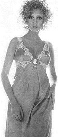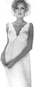 pastel white with snowy lace Gleaming white satin de Lys nightdress, very long, tying under the bosom and frothed with yards of white lace. By Kayse, from 7 1/2 gns, at Peter Robinson, Oxford Circus, from mid-November. Delicate diamante pendant and assorted pretty pearl and turquoise rings, from Hope & Eleanor, Chelsea Antique Market. Hair by Roger at Vidal Sassoon. |