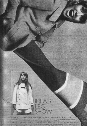 (2)Short shorts suit in shell pink corduroy, worn with a pink crepon shirt (not shown). By Gina Fratini, 37 1/2 gns., at Harrods. Pink gossamer stockings, by Adler, 32s. 6d., at Woollands.