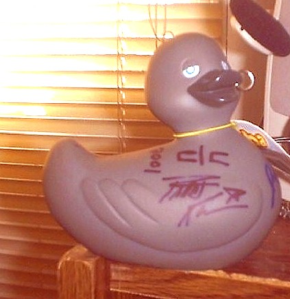 Here he is! Isn't he adorable?!?! I was told that this is the first thing signed in 2001 too. Needless to say, NO ONE touches the duck!