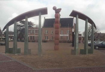 Dit is een foto van het Gemeentehuis met daarvoor een kunstwerk van het mooie dorp Someren. In Someren staan nog veel meer van zulke mooie kunstwerken. Someren is een cultureel dorp in Zuid-Oost Noord-Brabant.