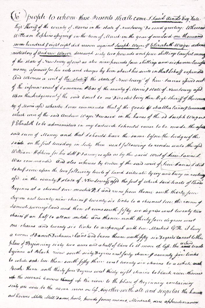 High Sheriff of the county of Morris in the state of New Jersey Do send greeting: Whereas