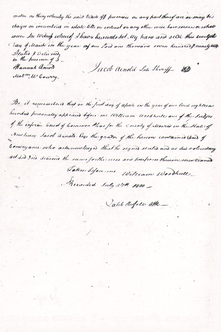 New Jersey Jacob Arnold Esq. the grantor [?] of the herein contained Deed of