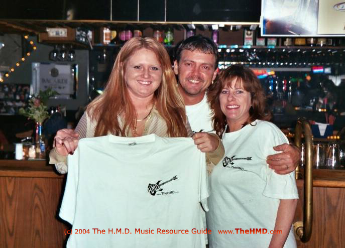 Chaz, Butch and Carla from RUSHER's in Spingboro, Oh with their H.M.D. MRG Tees after the 3rd Showcase. 3.27.04 |