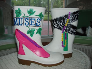 Cay had seen wilder and more raucous parades in New Orleans, but from her perch on the shoe, she had never seen more joyful faces in the crowd. At one point, she reached into her bag to grab a shoe to toss. She picked up a lumpy feeling one and took a quick look at it before she threw it. Then she started laughing. It was painted pump completely covered with bright red painted macaroni. She looked around and met the eyes of Marie Katerina who obviously had been waiting all this time for her to find it in her bag.
