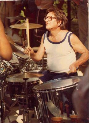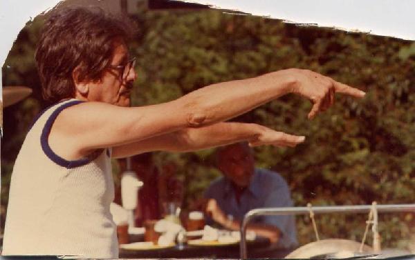 AS HE POINTED OUT EACH DRUMMER TO TAKE SOLOS OR AT ANY GIVEN TIME, TELL
