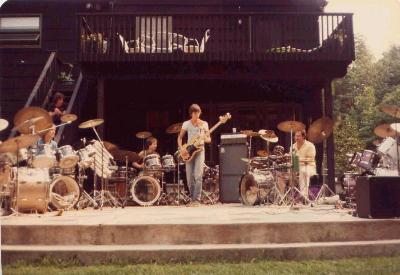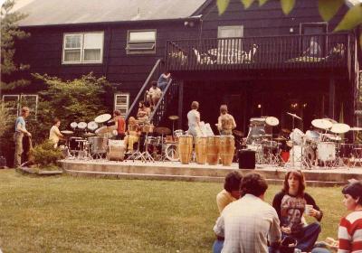 PERCUSSION INSTRUMENTS. DIFFERENT DRUMMERS WOULD BE AT EACH KIT PLAYING