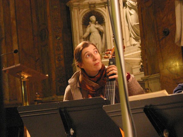 Members of My Lord Chamberlain's Consort recording at the Church of St. Ignatius Loyola on