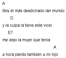 La mano derecha continúa tocando en vals pero ahora con los bajos de Re mayor. Esto se repite hasta llegar a "jó" de la palabra "dejo", en donde se cambia la mano izquierda a la posición de Mi septima con sus respectivos bajos, y así termina esta estrofa.
