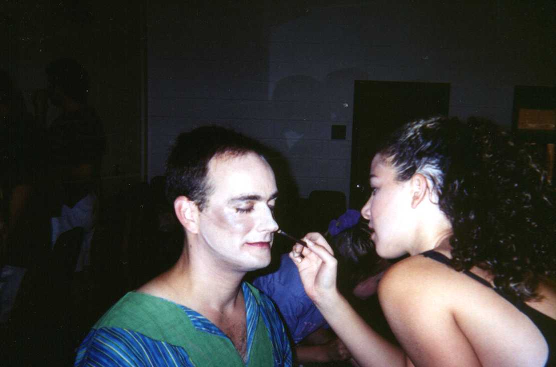 It was when the show was almost ready to go on, that I learned just how talented and incredibly friendly Vanessa is. My sincerest of thanks goes to her for her help with make-up. I was more comfortable sitting in her chair than in my hair cutter's! And she is light as a feather for those awesome Joseph lifts. Dustin may have been lost to the show, but the picture shows--he is a lucky fella.
