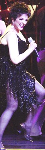 But after singing to us that "Liza's back from AA and she's OK," doing an unfortunate rap number based on "Liza with a Z" performed with the hip-hop artist called Little Leroy, and revving up a few numbers such as "Cry," this seemed a new Liza, re-invented with more sentiment than sass. Then, slowly, her program stirred itself like a sleeping giant. The sass was back. And so was Liza. She threw her legs astride, tossed back her head (topped with a becomingly gamine mop) and began drawing on the lovefest exhalations of the crowd as if it were oxygen. Spurred on by a few nicely calculated ad-libs, the lady started to give.