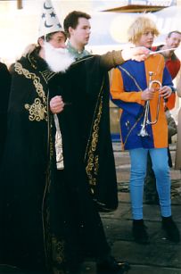 This was a collaboration with the Skipton Players - directed by Johnnie Ingram and Meg Boulton. It was performed on Sunday December 16th and consisted of two episodes (45 minutes each) in different outdoor locations around Skipton - Chapel Hill at 12.15pm and Victoria Square at 2pm. Episode one focused on 'The Sword in the Stone and Clifford's Curse', episode two on 'Clifford the Craven and Lady Bob.' Scripts have been written by Laura Kane, Glyn Williams, Emma Bowskill and Johnnie Ingram (with the narrator's prologues written by Jean of Skipton Players.)