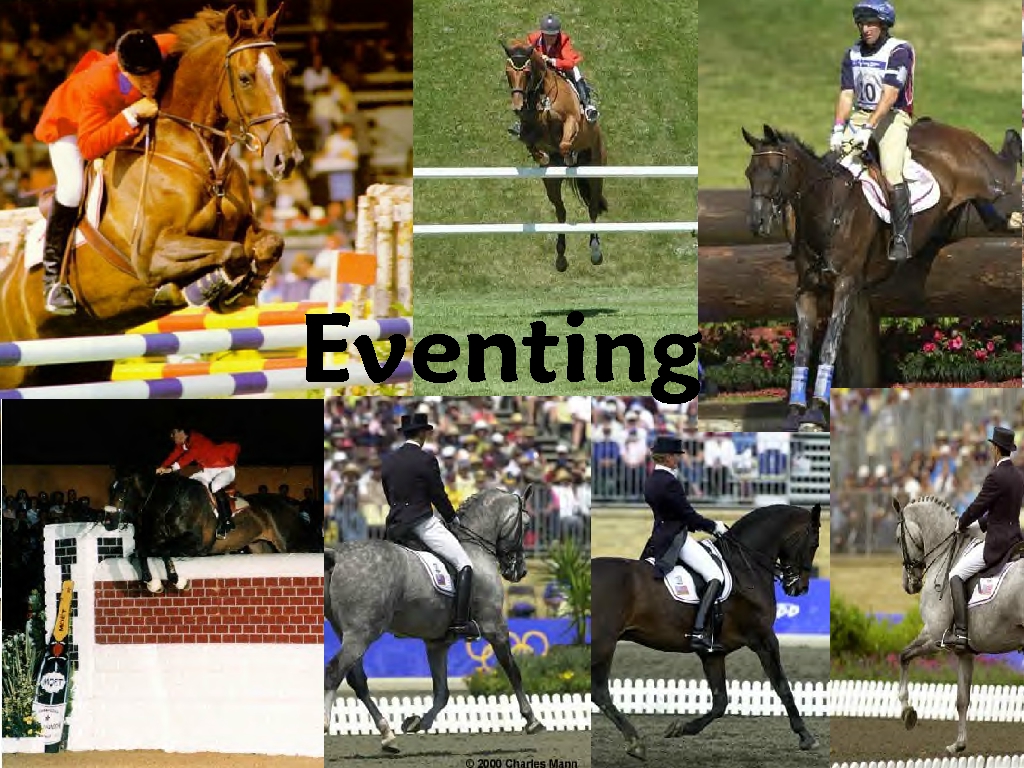 Welcome to the eventing club! I (Chelsea) am the owner. There are three events in a three-day event. On the first day there is dressage, the second is cross country, and the third is show jumping. There are also several levels of eventing (2 star, 3 star, 4 star...is there a 1 star?). To see if you're horses qualify, go to the Requirments page. It's not that hard to enter.