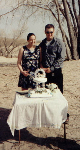 This is Brodie and Kandi, standing in front of the cake Kristy and Kelly made for them. Kristy is Kandi's bestfriend, shes so cool. Kristy has 4 great children. Two live with her parents and 2 live with her (long story.) She gets to see them a lot which is so cool. She has an adorable lid'l girl named Taylor and a new son named Sebastian Xavier (June 25'01).