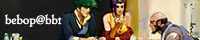 Somewhere down the Crazy River - A cowboy Bebop Fanworks page. It's soo good! I was going to post The Fan art there on this page, but I am kind of running out of space, so.. Yeah. Go there, it's coolies. ^__^