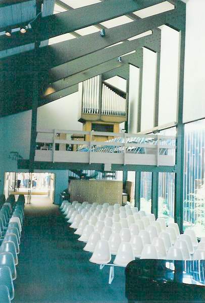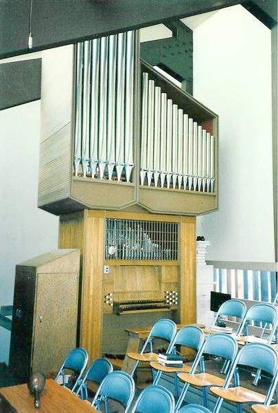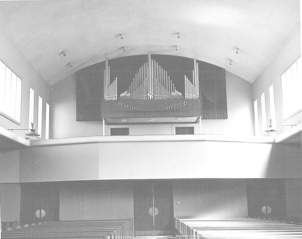 This noteworthy instrument sits in the rear gallery against the back wall with the Ruckpositiv case on the rail, and speaks down the central axis of the nave. The keydesk is attached and slightly recessed into the case. It was the 2nd tracker-action instrument to be installed in Seattle after the Organ Reform Movement was begun in this country. It was a landmark installation and was dedicated by E. Power Biggs. In recent years, it has had some tonal additions to the Hoovdwerk (Great) and Pedaal (Pedal) by Paul Fritts. The action was also converted to a suspended key action during this renovation with additions.