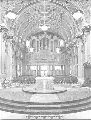 The new Archbishop Thomes J. Murphy Millenium Organ is housed in three free-standing cases at the front of the Cathedral. It is a III-manual & pedal organ playable from a IV-manual console - which can also play the Hutchings-Votey in the rear gallery like its Casavant predecessor. It also retains 5 ranks from the previous instrument.