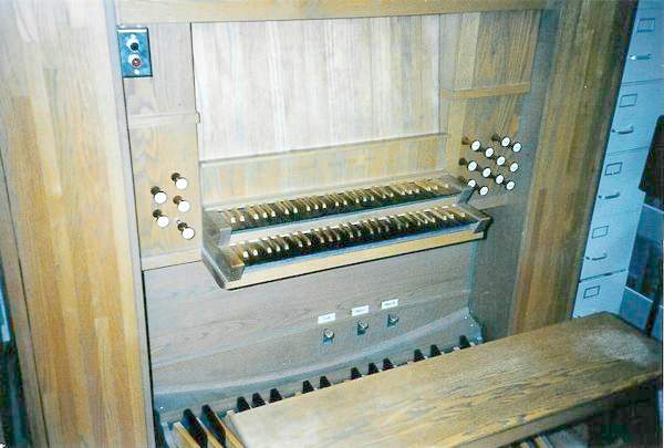 M.P. Moller, Opus 9578 A, 198_, II-manuals, 15 voices, 23 stops, 19 ranks, 1124 pipes.