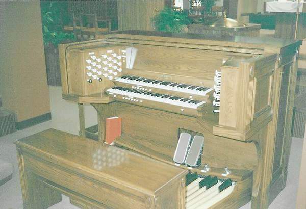 The congregation's first pipe organ was a W.W. Kimball, Opus ____, 19__. It was a II-manual & pedal instrument with 14 voices, 14 stops, 14 ranks and 792 pipes.