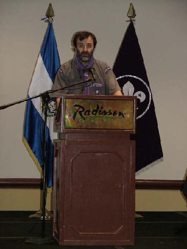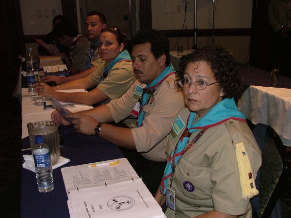 Durante e prome discurso di e Secretario General di WOSM, sr. Dr. Eduardo Missoni, na tur miembro di e Region Scout Interamericano, el a punta dede riba e delagacion di Aruba y Antias. E S.G. a duna palabra di elogio pa e dos delegacionnan aki cu ta grandemente representa, aunke no miembro oficial ainda, compara cu delegacion di diferente otro pais.
