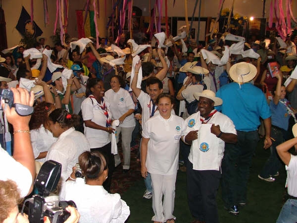 A clausura e festividadnan rond di e Conferencia Scout Interamericano na El Salvador cu un cena y fiesta di gala. Durante e ceremonia aki un biaha mas Scouting Aruba ta presenta su piesa "Jump with your towel".