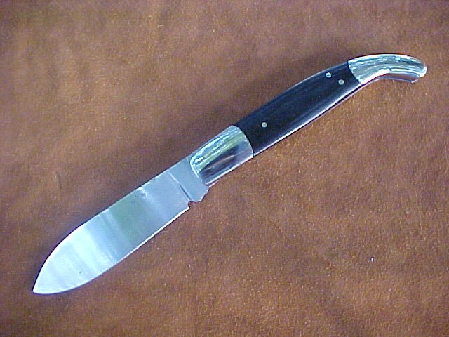 G4ECK803 English Clasp knife 9 1/2" open, 5 1/4" closed. Blade is 1084 steel and handle is black micarta. $300.00