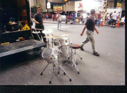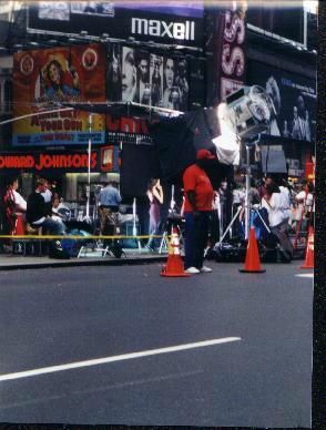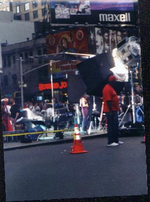 A shot of Times Square with the Corrs shooting Irresistible on a little island in the middle.