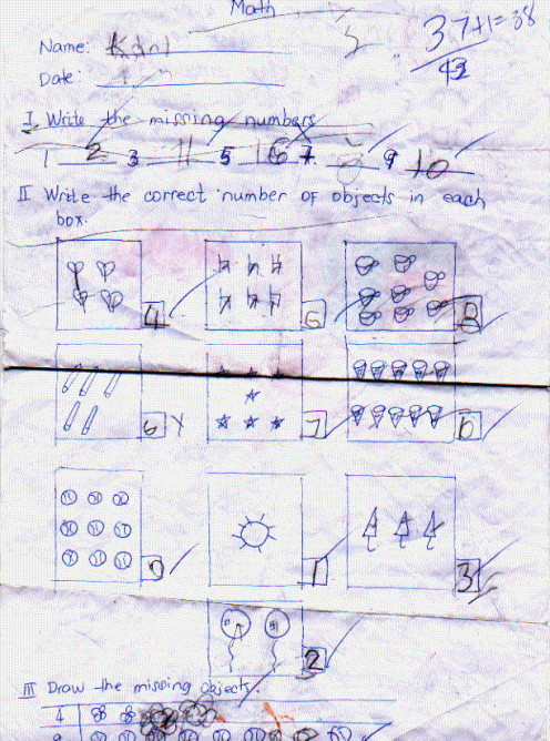 his first EXAM in Nursery school, 38 out of 40...