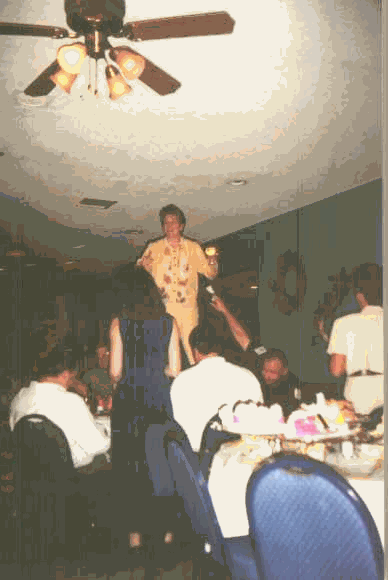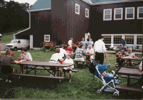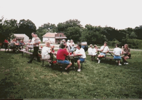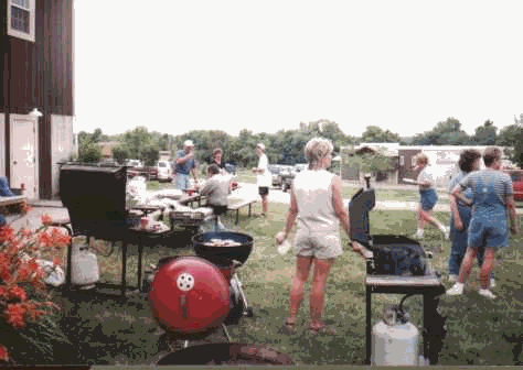 Mike Thomas and Mark Leonard take a break from grilling (left) while