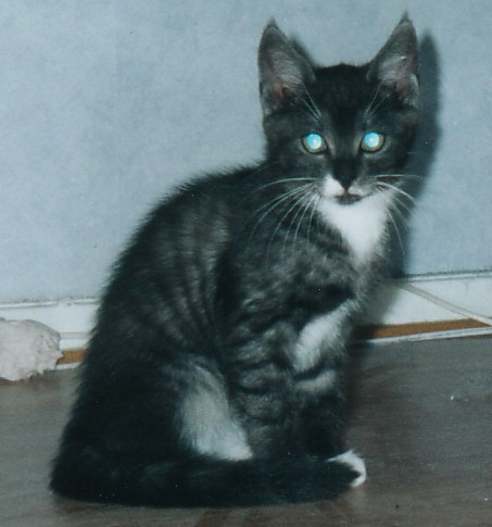 Det här är våran lilla katt Wilson! En kastrerad hane på 10 månader.. Han gillar att stirra på dammtussar, leka med godispapper, titta ut genom fönstret och att busa med sin kära matte och husse.. =) Den här bilden nedan är tagen första dagen hemma hos oss, när han var 10 veckor gammal!
