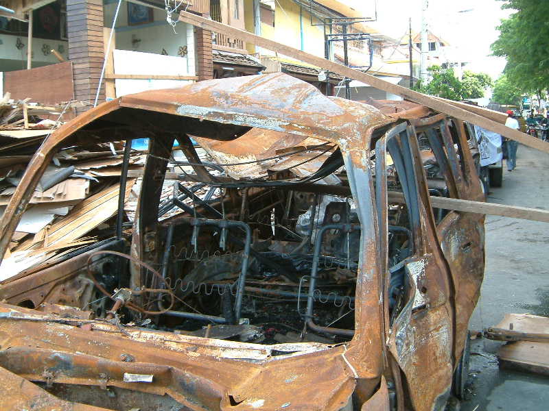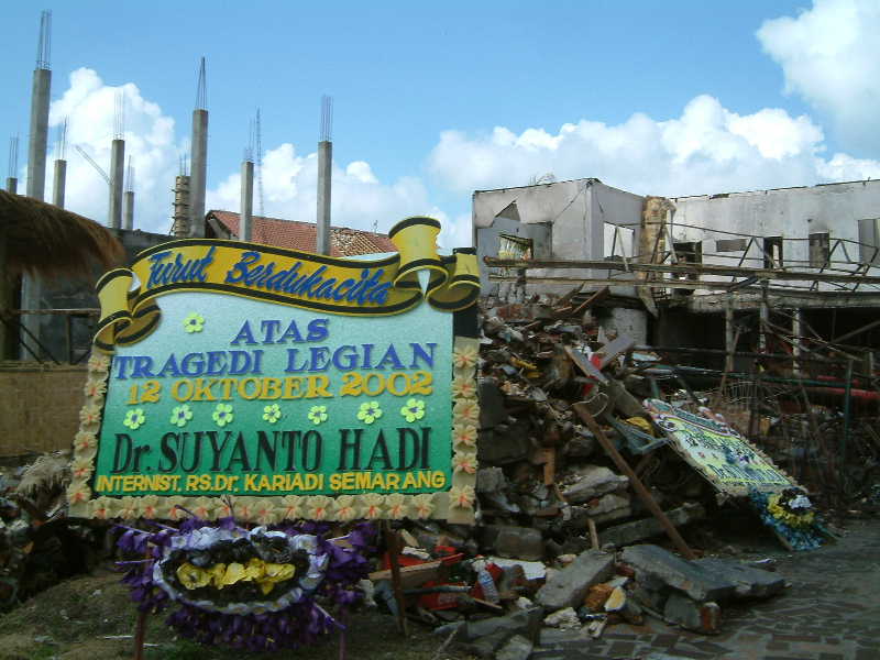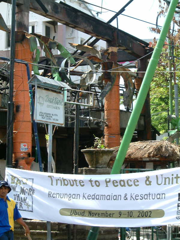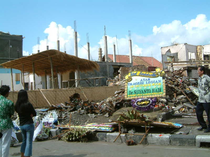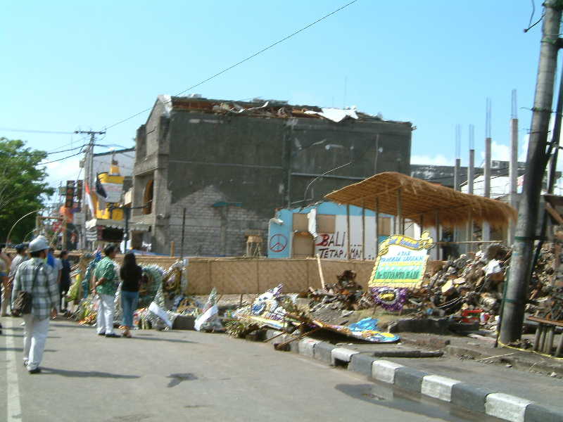 After the Bali bombings 12.th Oct. 2002 the rubble was left in Jalan Legian for a month. The police were still investigating , and you could see the burned out cars standing on the street. When the bombs exploded in Sari Club and Paddy's it started a chain reaction were all the cars exploded to because of the gasoline. They were not moved until just before the Purification ceremony 15.th Nov.