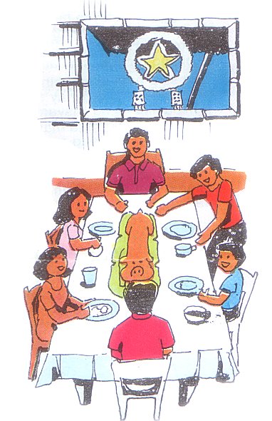 The card was simple. The design was composed of a central panel, which showed a family party in