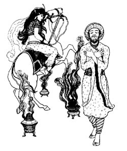 "Madam," cried the dervish, "out of all the number who have asked me the way to the mountain, you are the first who has ever suggested such a means of escaping the danger! It is possible that you may succeed, but all the same, the risk is great."