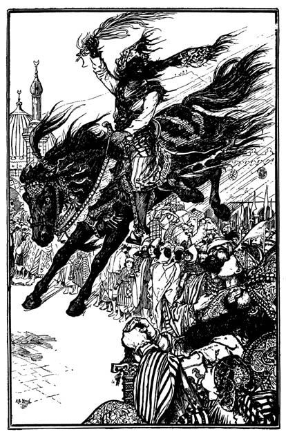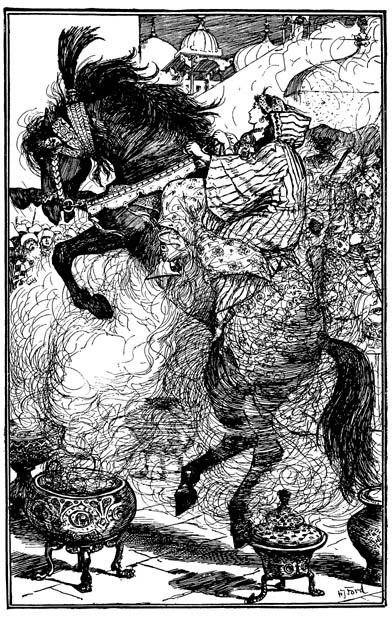 "Sire," said he, prostrating himself as he spoke, "although I make my appearance so late before your Highness, I can confidently assure you that none of the wonders you have seen during the day can be compared to this horse, if you will deign to cast your eyes upon him."