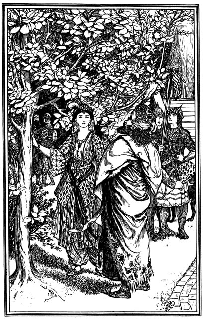 On hearing these words Prince Bahman and Prince Perviz understood all they owed their sister, and the knights who stood by declared themselves her slaves and ready to carry out her wishes. But the princess, while thanking them for their politeness, explained that she wished for no company but that of her brothers, and that the rest were free to go where they would.