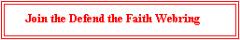 Welcome to Defend the Faith, a website dedicated to Catholic apologetics, fellowship, and more! "Defend the Faith" also has an on-line club and an e-group as a forum for discussion and sharing. I pray that this will be a place where together we might all grow in wisdom and love for Christ our Lord and the Faith entrusted to the Apostles. Our Catholic faith is an awesome inheritance to receive and to pass on. May we stand ready in knowledge and love to share with all who ask us the reasons for our hope! May the Peace that is ours in Christ be with you all!
