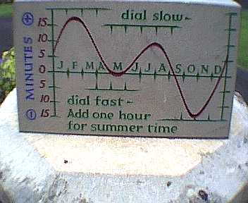 Here is a picture from the riverside gardens in Market Harborough town centre, which shows the corrections for the new sundial there.