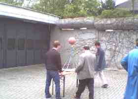 Blick vom Dach des Gebäudes der Funküberwachung auf den Aufbau. |