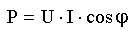 berechnen. P ist die Wirkleistung, U der Effektivwert der Spannung, I der Effektivwert des Stroms und j die Phasenverschiebung zwischen Strom und Spannung.