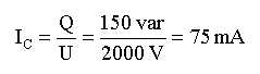 Unter Annahme von reiner Blindleistung von 150 var ergibt sich folgender kapazitver Strom: