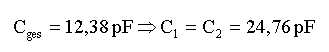 Da aber zwei Kondensatoren in Serie geschaltet sind (zwei Spulen) belaufen sich die Einzelkapazitäten auf: