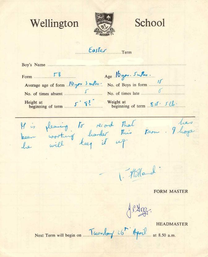 styles of reports issued in the 1980's, including the headmasters comment section. |