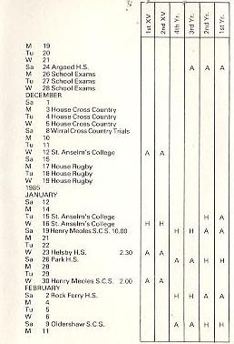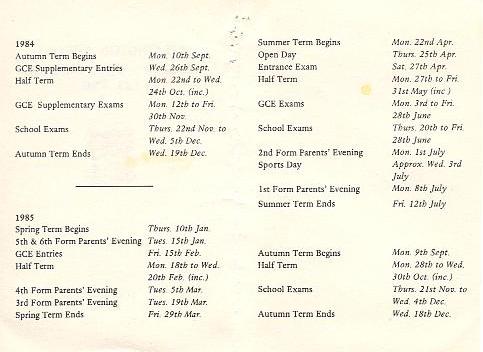 Right:- Timetable from around 1985 |