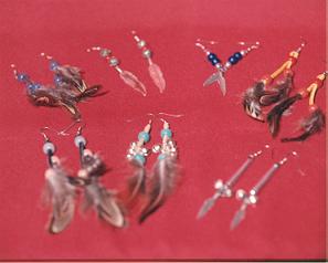 ~Earrings~The Earrings That I Make Are Made With The Same Material That The Necklesses Above Are Made With, Except I Use Silver Shaped Feathers & Little Bells On Some Of Them. (Im sorry for the fuzzy picture, Its the only one Iv got) The Prices For These, (small-$15.00 pair) (large-$25.00 pair) (feather-$40.00 pair)
