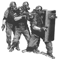THE OFFICER IN BLUE SHOOTING AT BAD GUYS