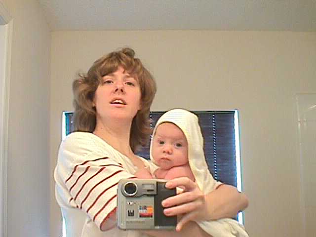All great artists eventually do self portraits when they run out of other subjects. Mommy is no different, taking pictures of us in the mirror with the digital camera she bought daddy for Christmas.