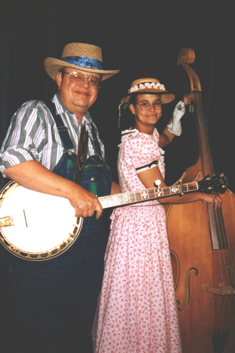 Well, all good things must come to an end and this is the end, for now. If you have any comments, especially about identifying some of the un(mis)-identified people in any of the picutres, please email me at bgrassnut@cox.net. Bluegrass has been a big part of my life and I have enjoyed sharing it with you. I will leave you with a picture of me and Alice Zincone in our "costumes" for the McGee's Crossroads School fall party.