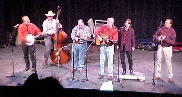 with Alice doing a guest spot. From l to r, Stan Brown, Snuffy Smith, Mike Aldridge, Tommy Edwards,