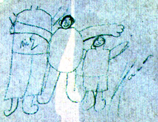 Those are Nick, Biscuit & Aaron (left to right). OMG! Nick definitely lost his head now! ;o) Hey, try to guess who's the young artist who drew the pic above... Tips: he's cute, smart and has got a REAL sweet voice. Got it? Who? Nahh.. not Nick! Someone a little shorter, and younger than NC... YEAH! Mr. Aaron Carter! Aaron said Nick's soooooo tall that he wouldn't fit on the paper. That's why his head is missing. Aww poor Nick... *lol*